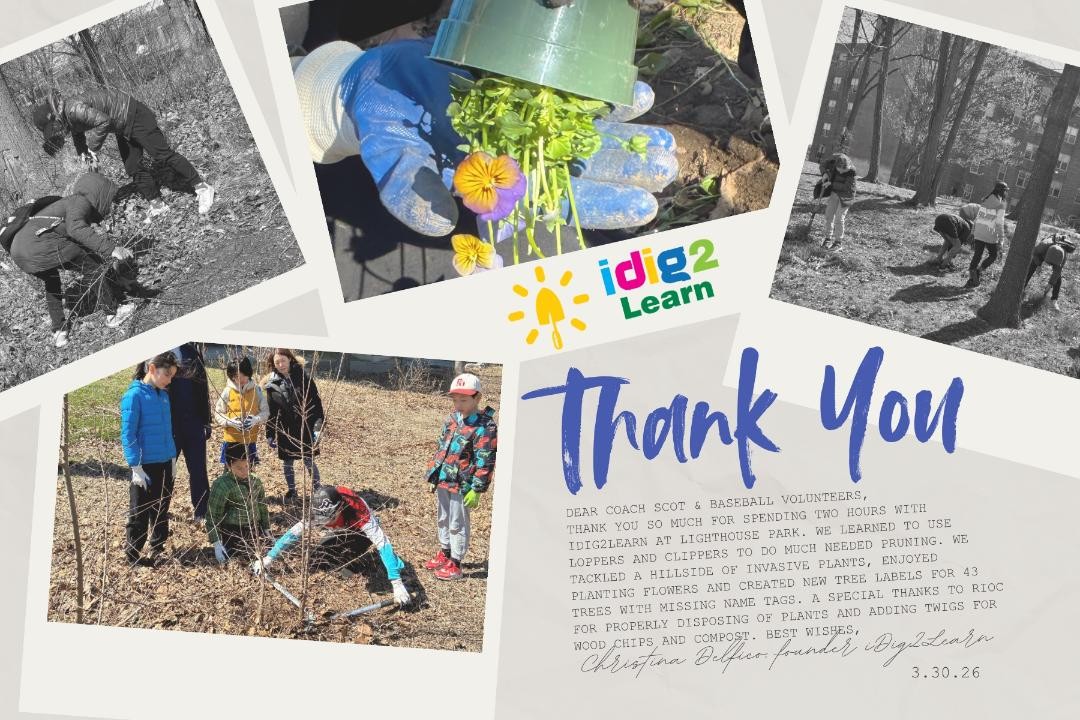 Volunteers needed (10yo and up) for light digging, removing invasive plants, and adding labels to trees around Lighthouse Park. And Plogging, (walking and litter cleanup). Please dress warmly and for a possible mess, with covered shoes, and bring your reusable water bottle. Gloves and tools will be provided. If it is pouring rain we will cancel. Players and families from Coach Scot Baseball volunteered and had a great day of fun and learning!